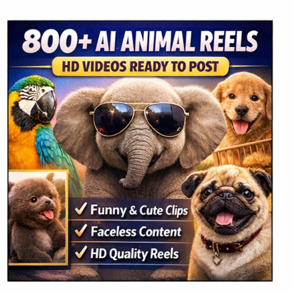 This bundle gives you 800+ AI animal reels in HD format, ready for short-form content use. Whether you run a theme page, manage a faceless account, build content libraries, or sell digital products, this pack gives you a large collection of eye-catching clips you can start using right away.